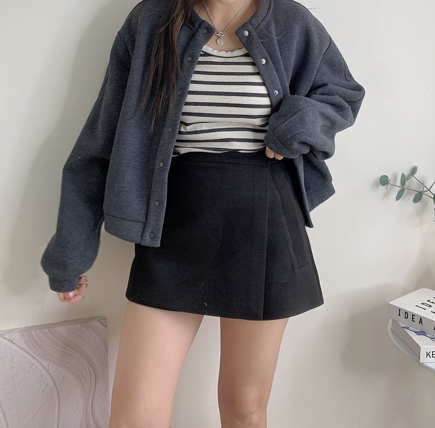 細格仔側叉裙褲-深灰
