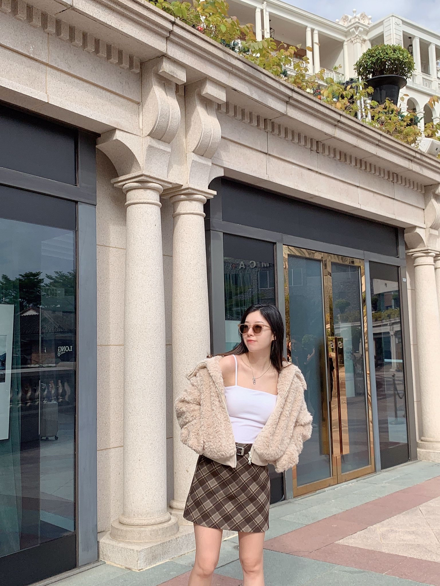 格仔絨料短裙-啡色