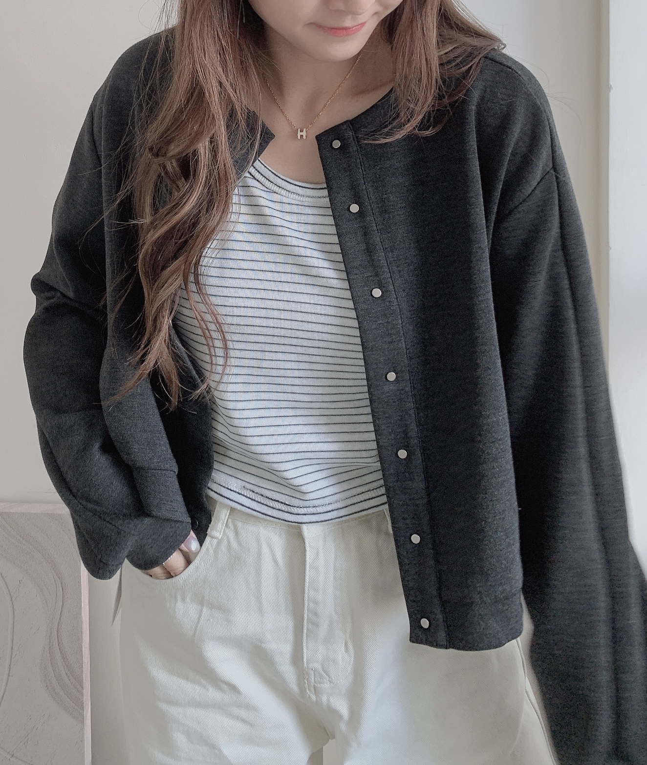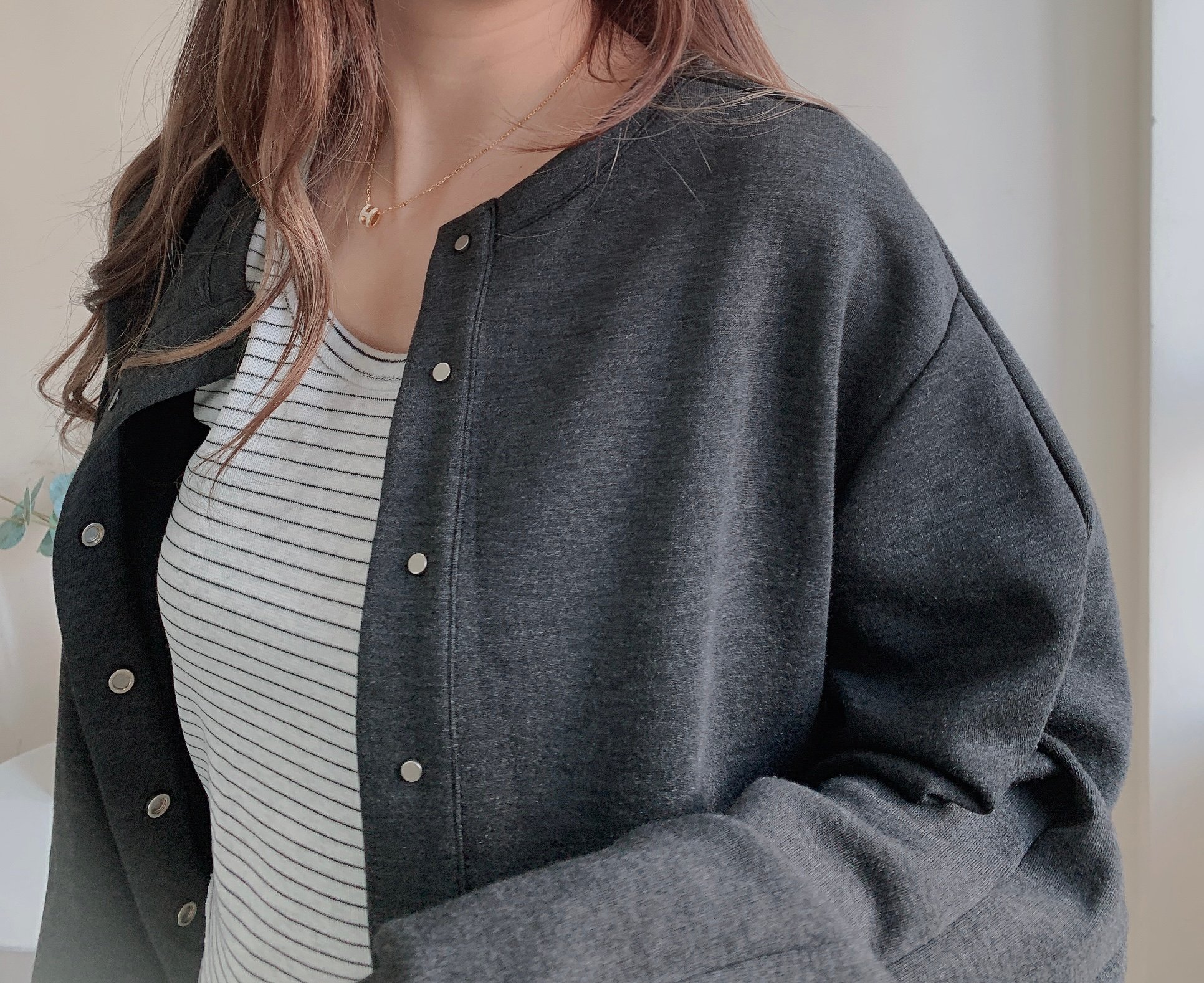 《新品優惠》短款棒球褸橫間背心set-深灰