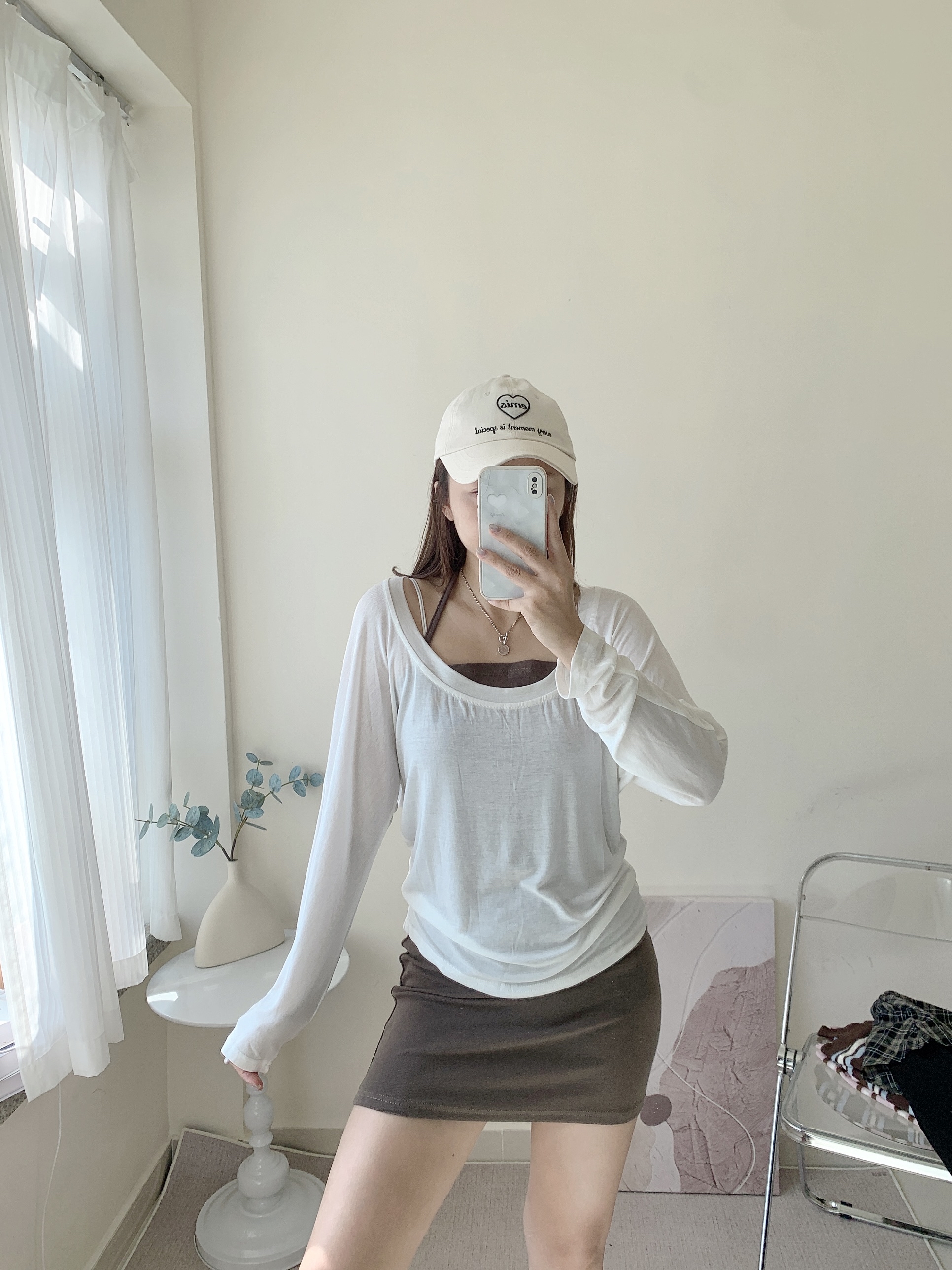 《新品優惠》防哂罩衫掛頸Ops Set-白衫啡裙
