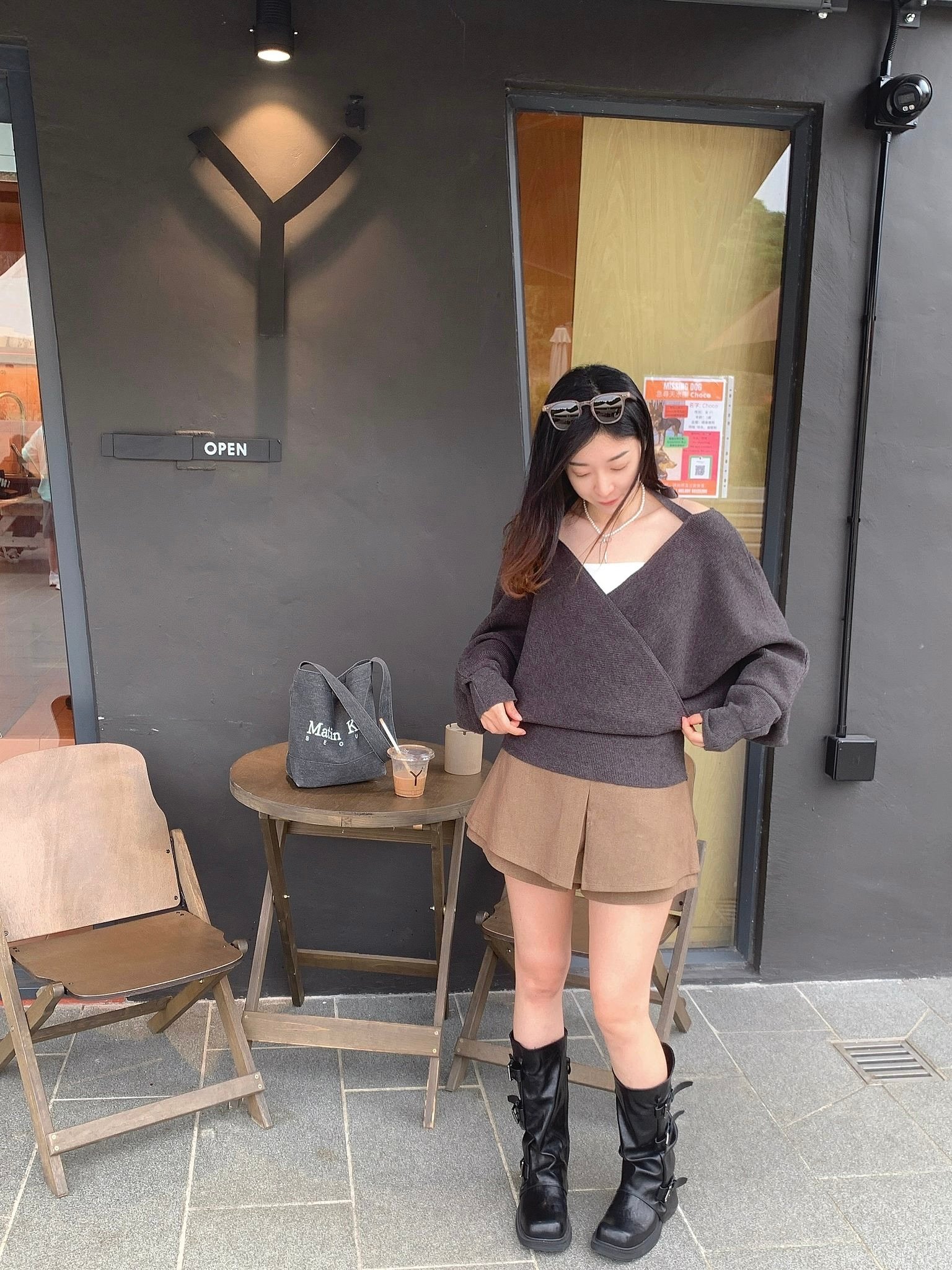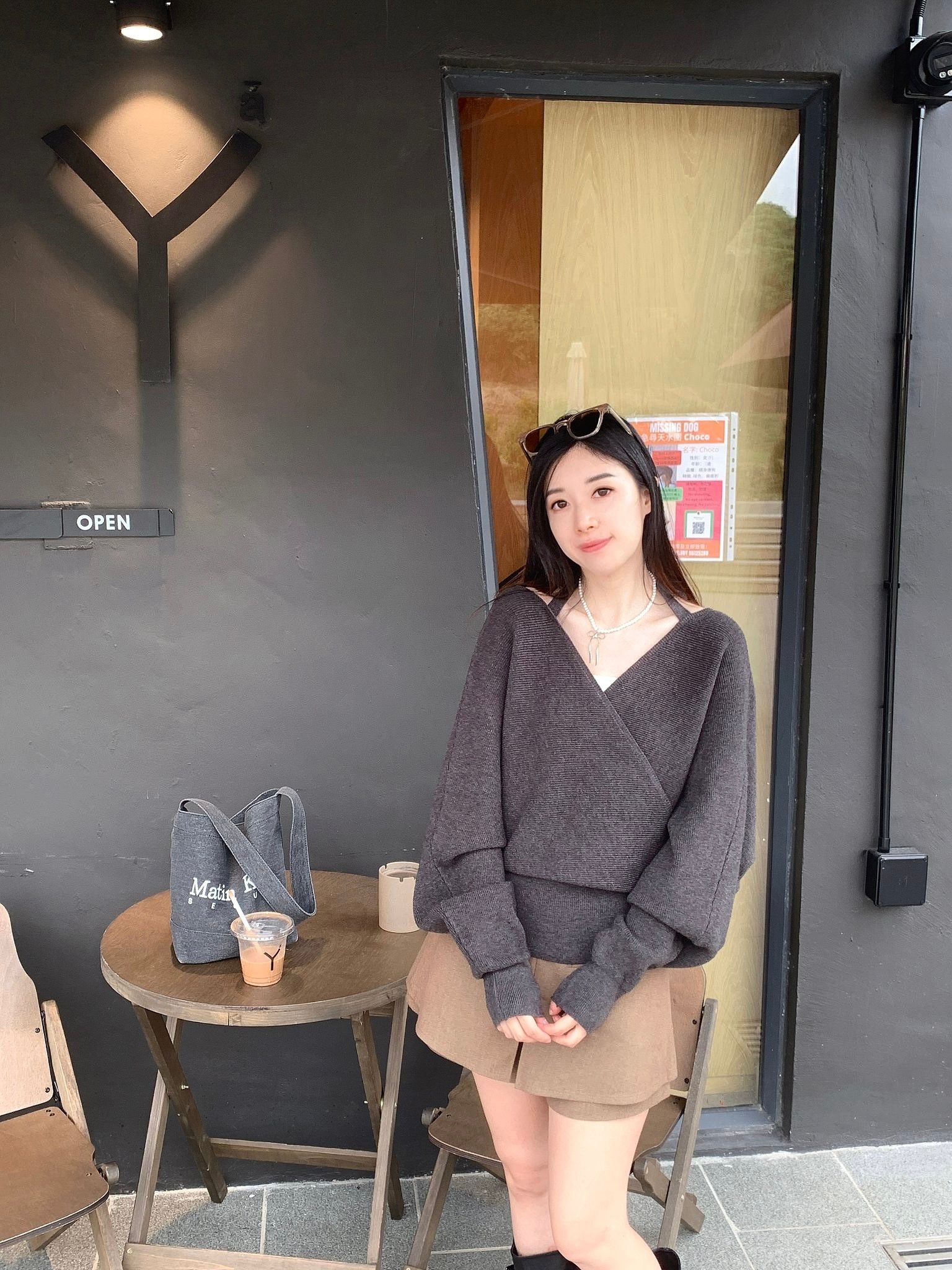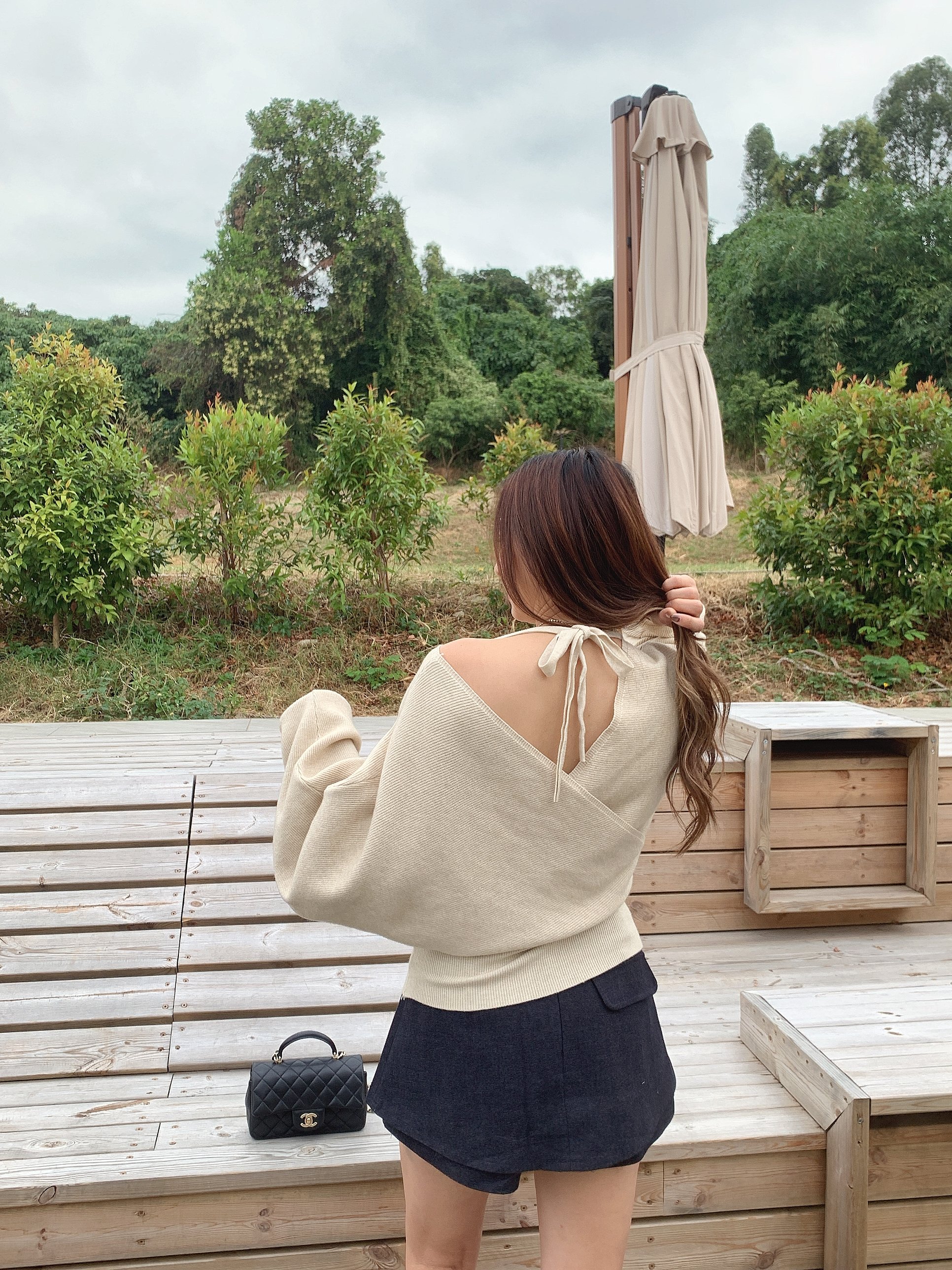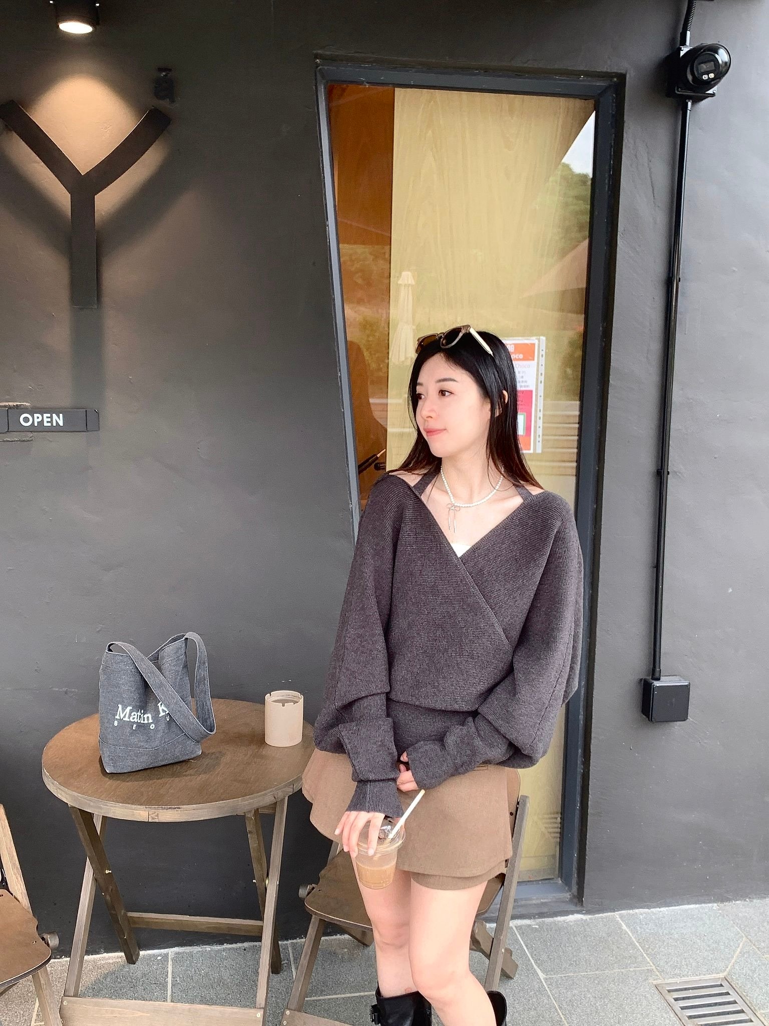 前後V綁繩貴氣Top- 深灰