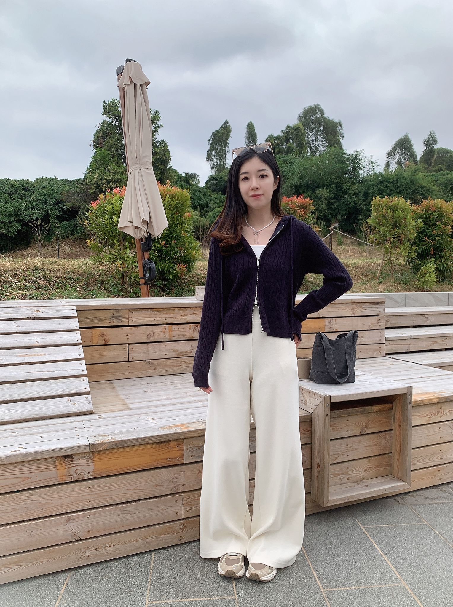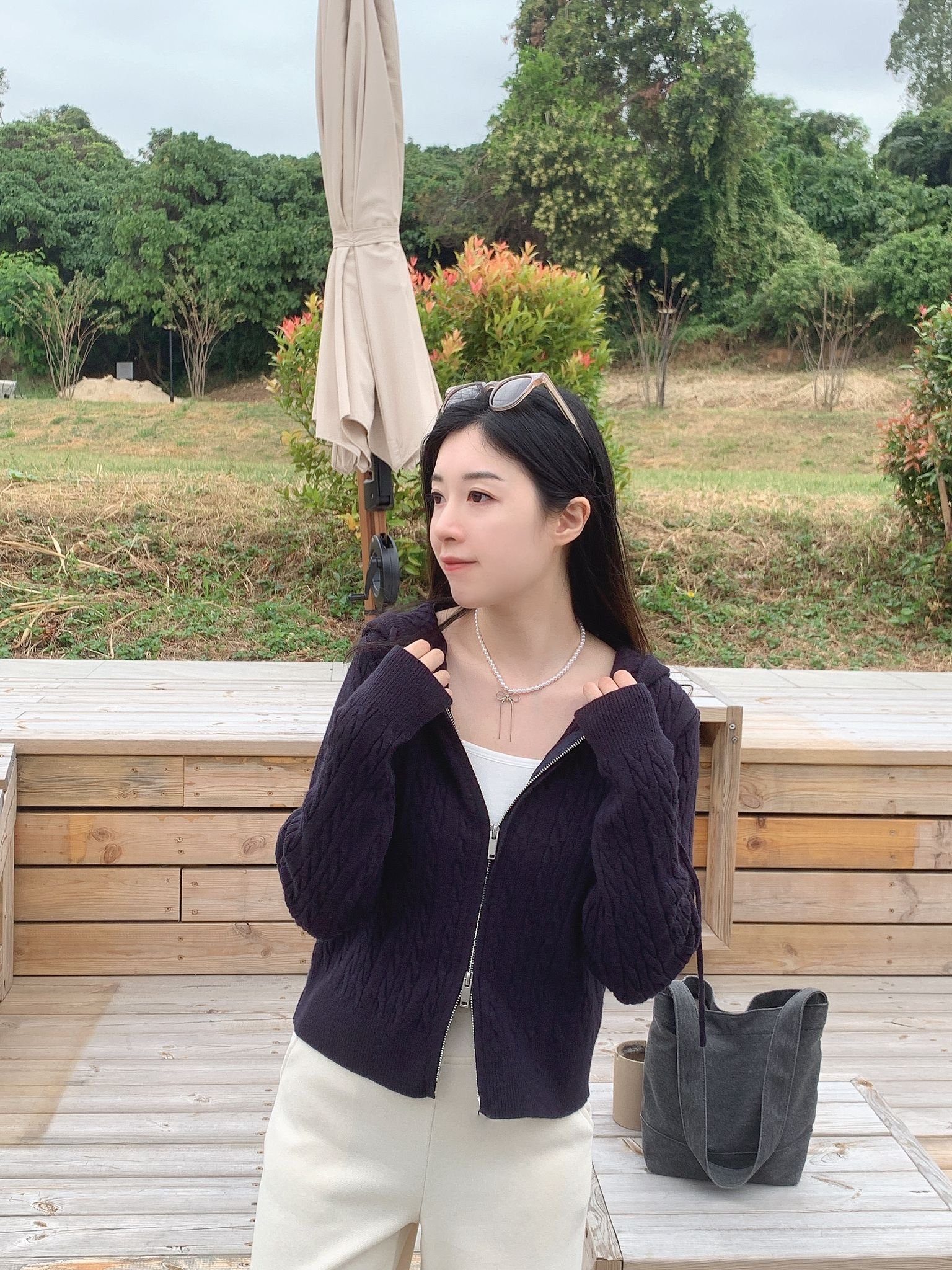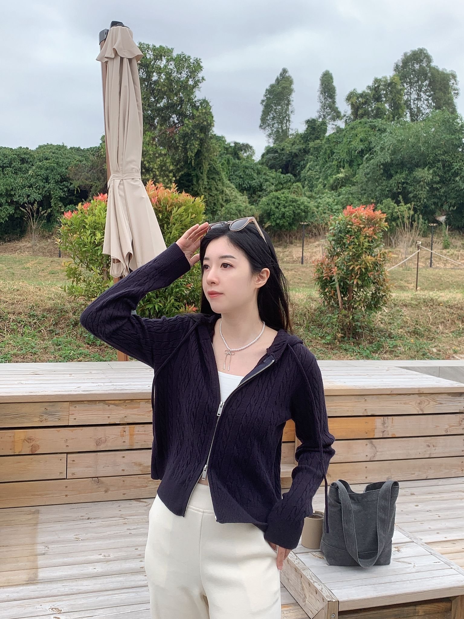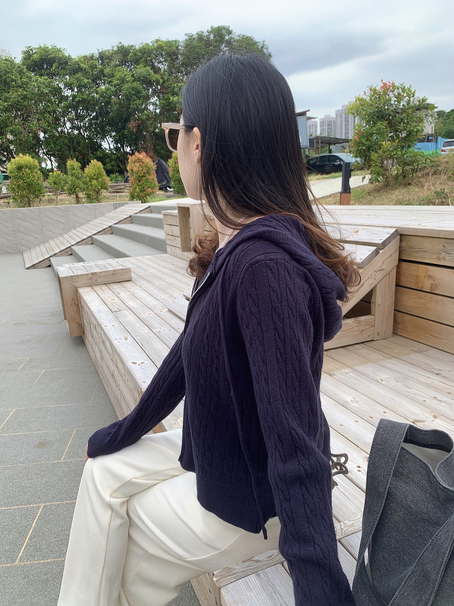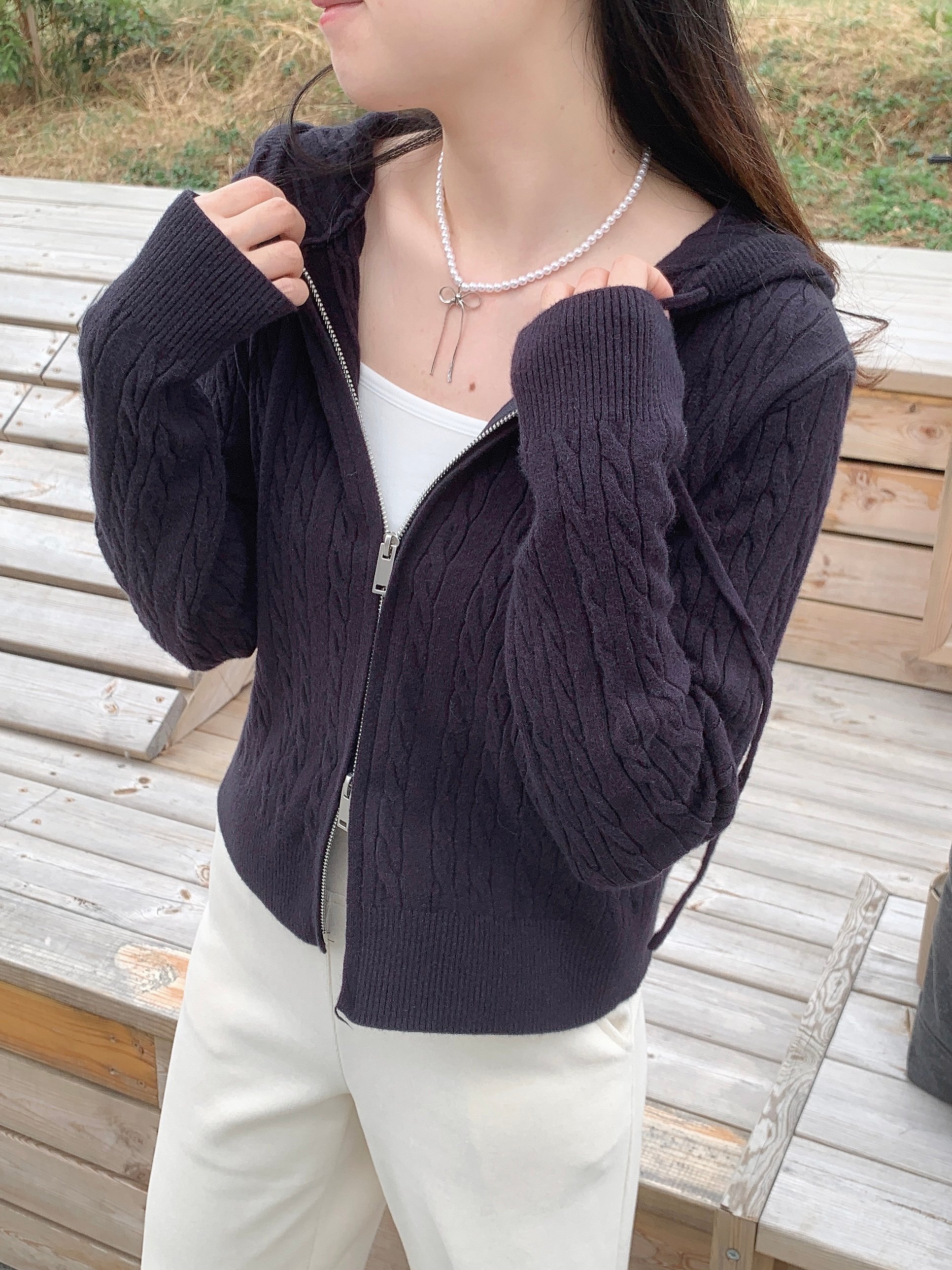扭紋拉鍊有帽Cdg- 深藍