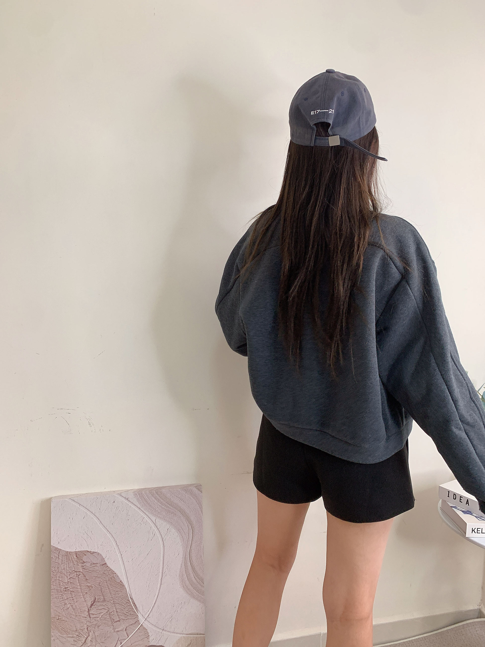 斜布絨料短裙褲-黑色