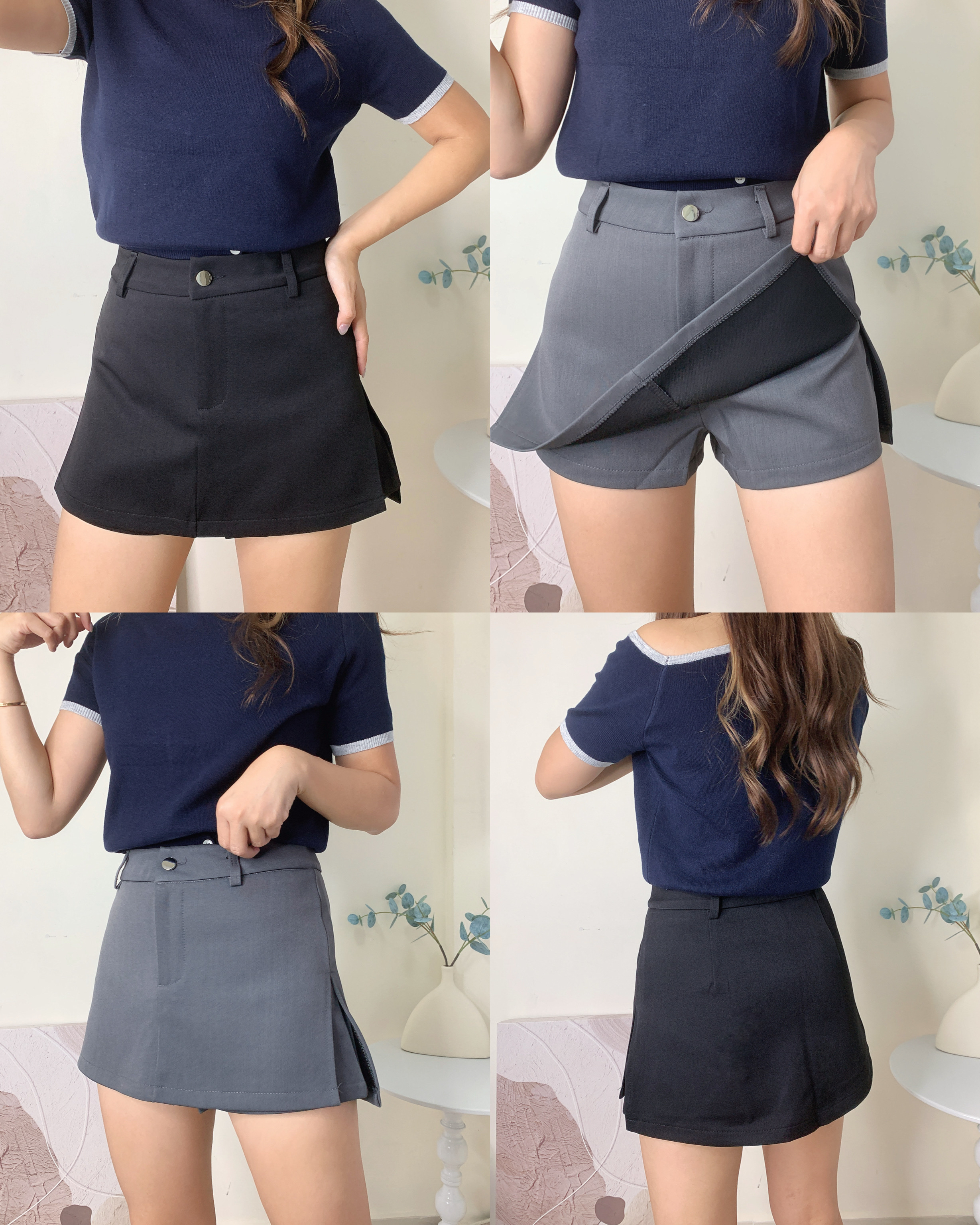 《新品優惠》兩側開叉西裝短裙褲(兩色)