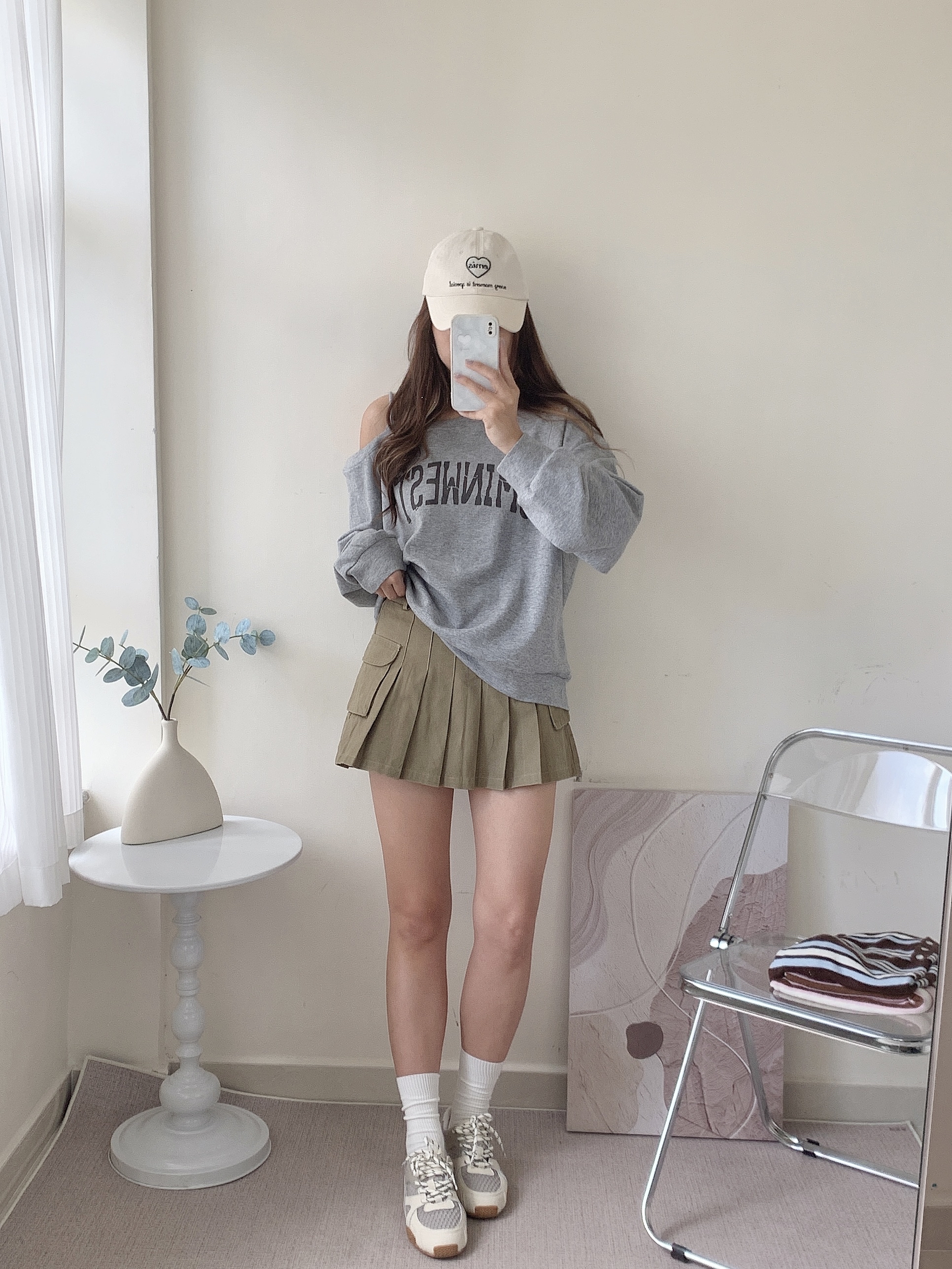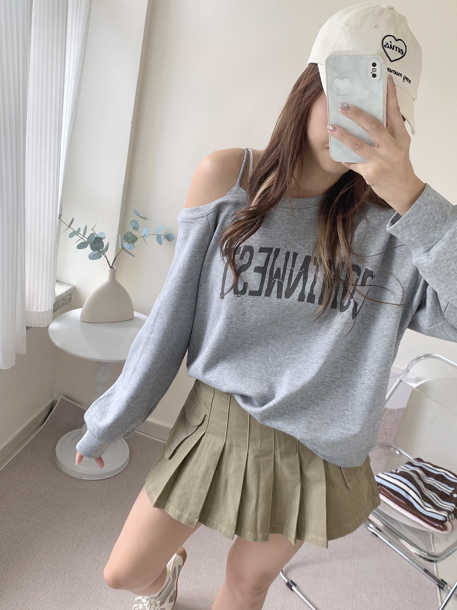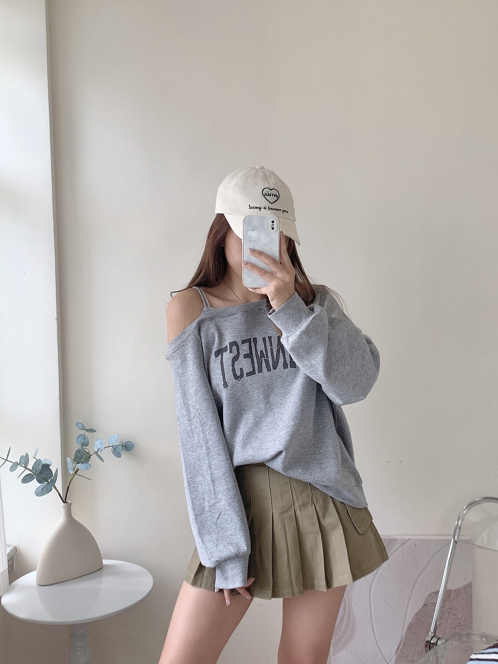 《新品優惠》 露肩吊帶衛衣-淺灰