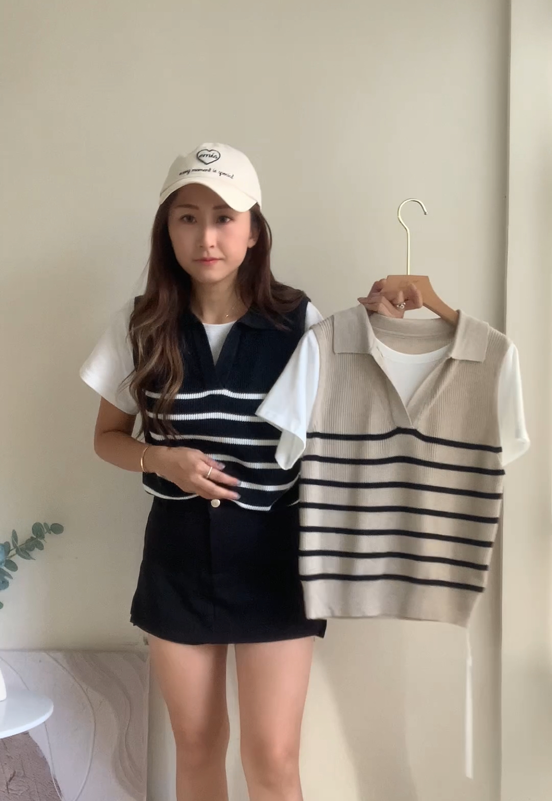 《新品優惠》Polo領橫間背心假兩件(兩色)
