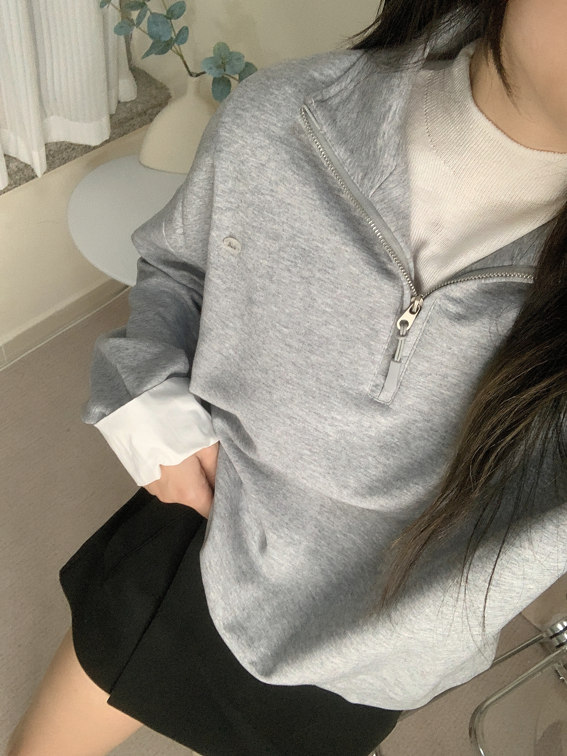拉鍊反領衛衣-灰色