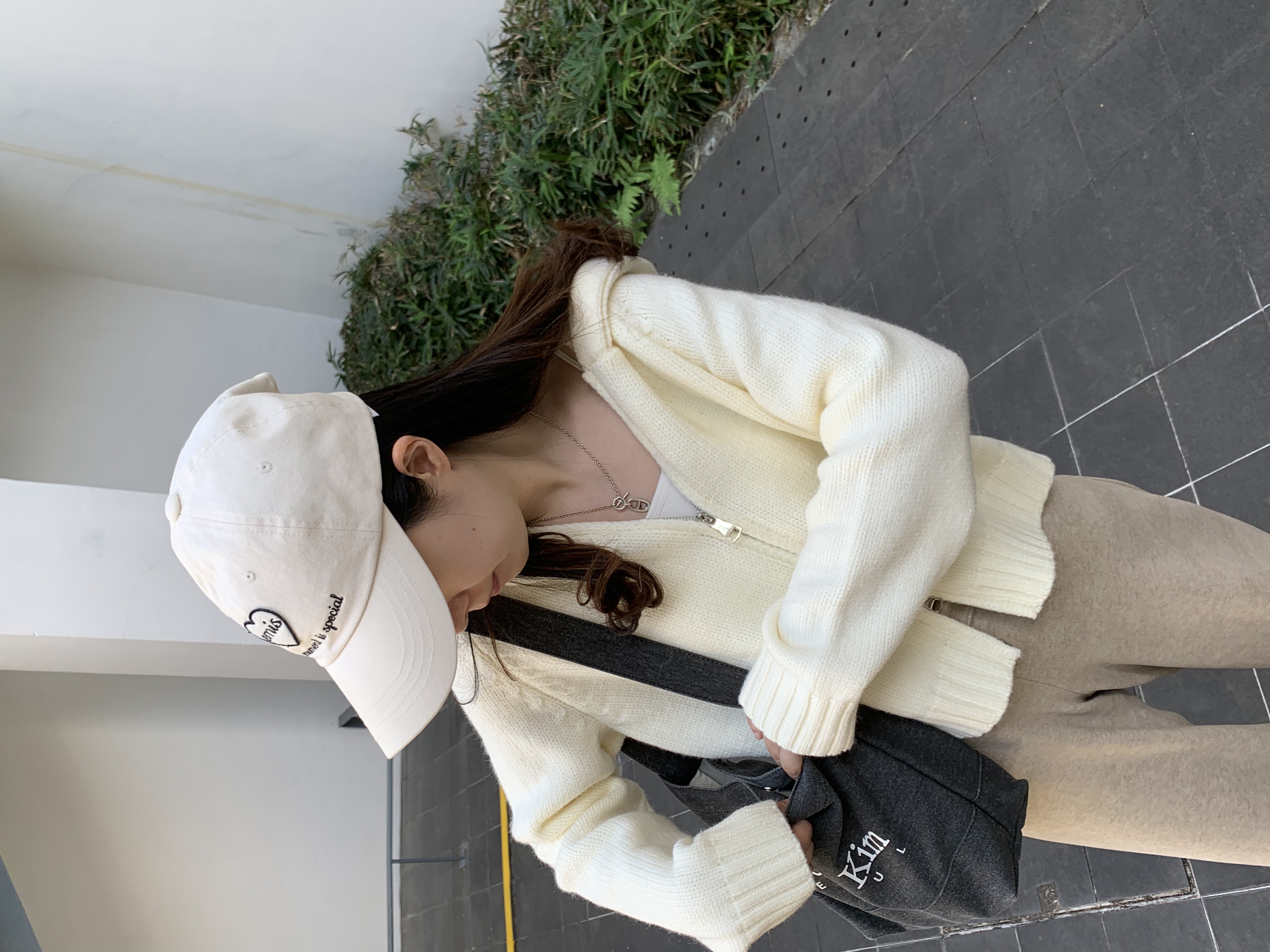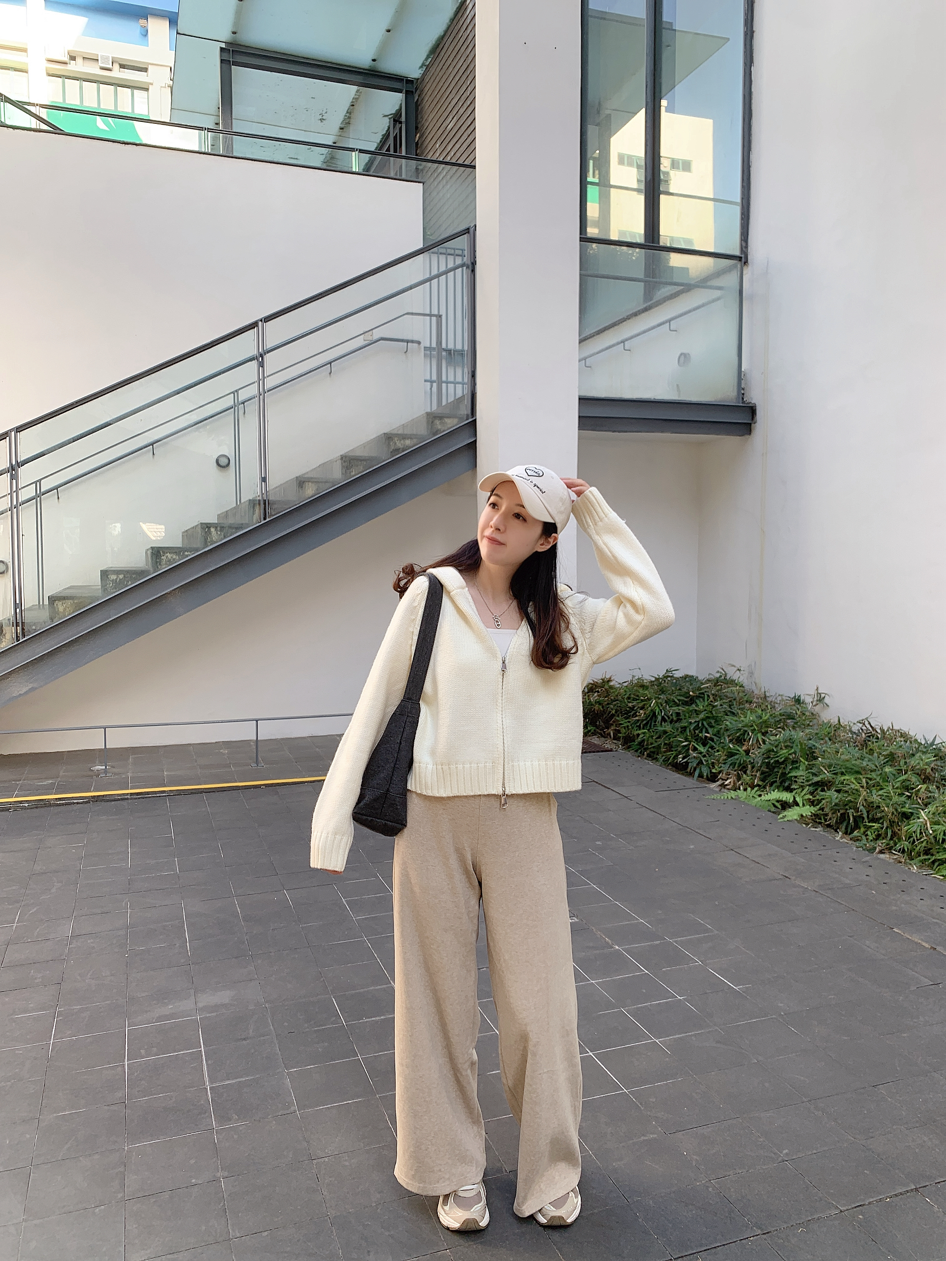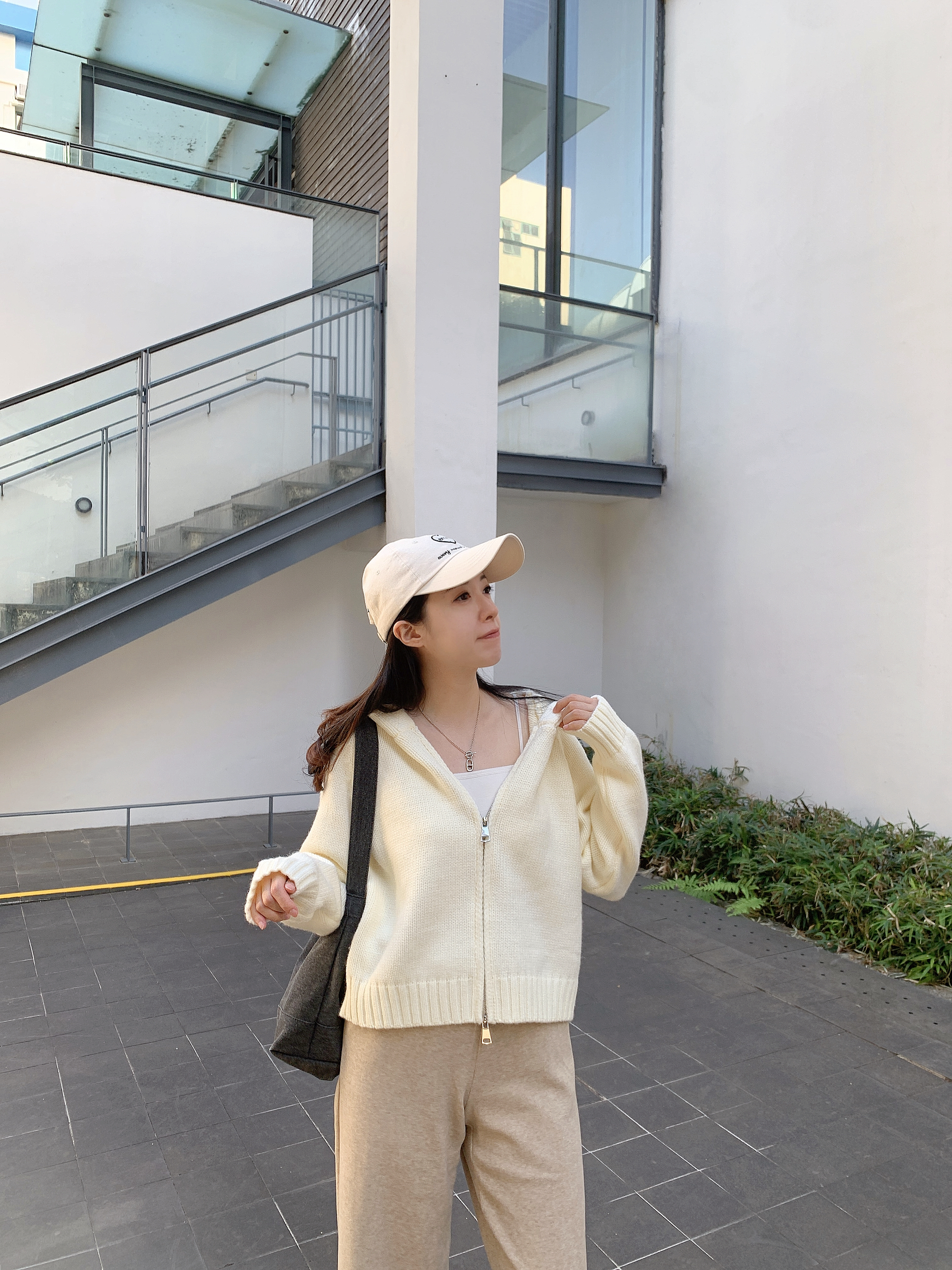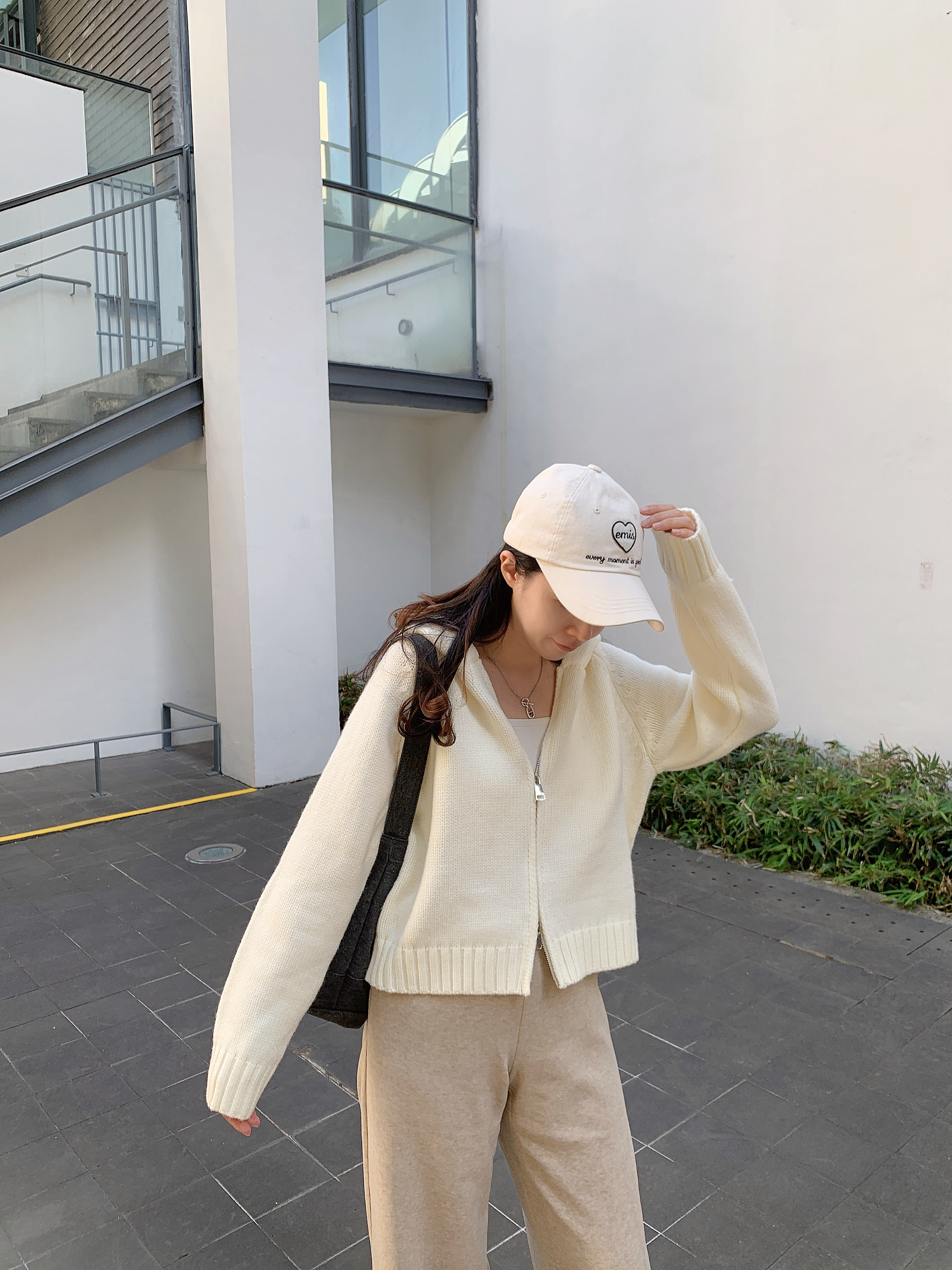 拉鍊有帽外套-白色