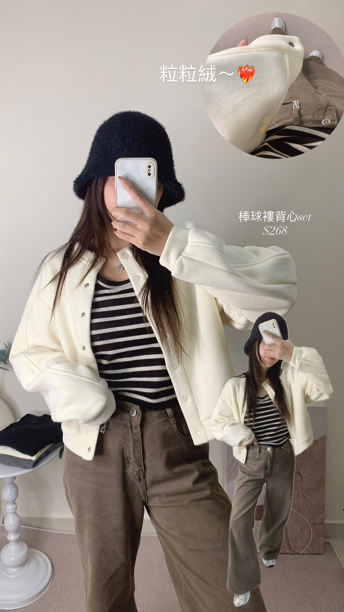 棒棒褸背心Set-米杏