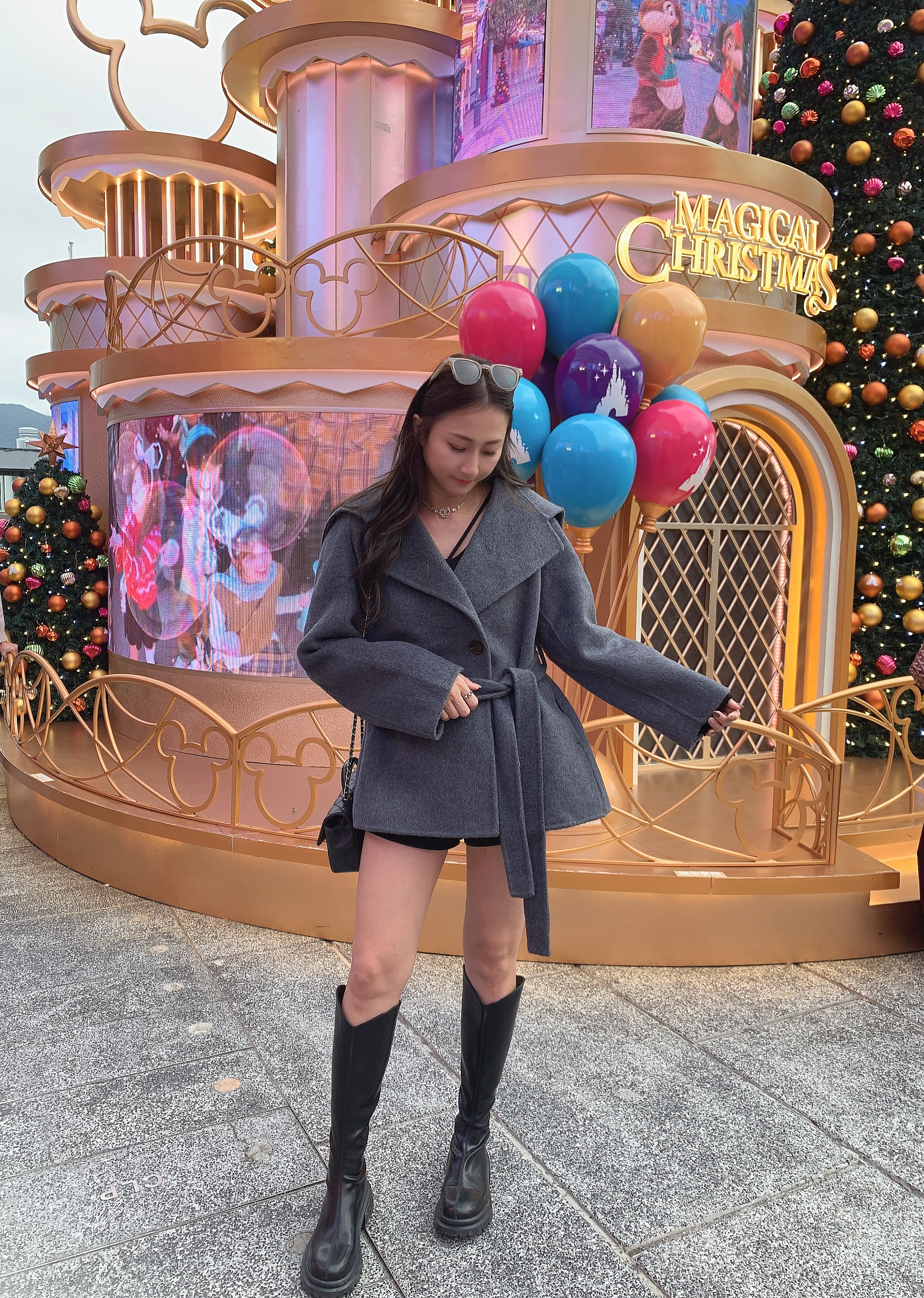 Handmade大反領綁腰羊絨外套-深灰